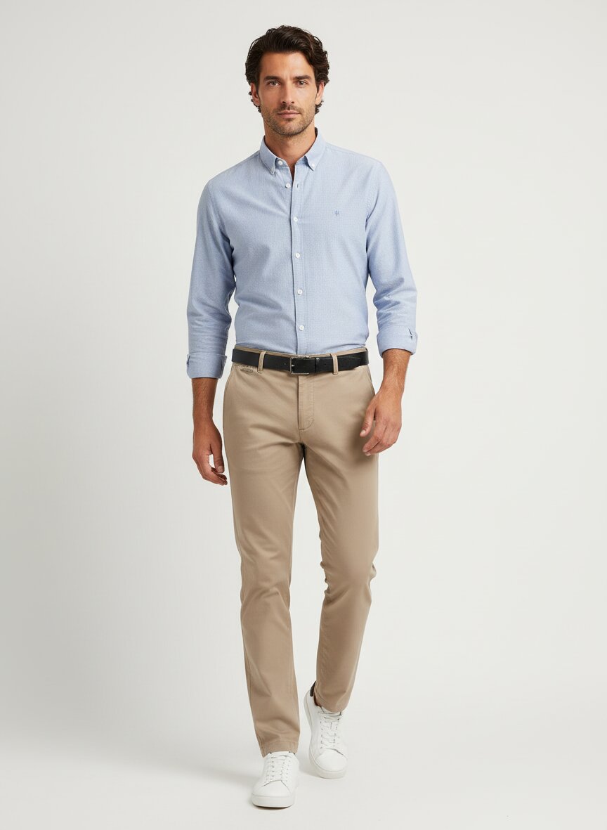 Die Lou besticht durch ihre Ceramica®-Baumwollmischung, die Keramikpartikel ins Gewebe einarbeitet und so natürliche Temperaturregulation bietet. Das Material aus 63 % Baumwolle, 32 % Polyester und 5 % Elasthan liegt geschmeidig an und behält auch nach häufigem Waschen seine Form. Im Regular Fit präsentiert sich die Chino als vielseitiger Business-Begleiter, der auch am Wochenende elegante Lässigkeit ausstrahlt. Die praktischen seitlichen Einschubtaschen und geknöpften Gesäßtaschen runden das durchdachte Design ab, während die OEKO-TEX®-Zertifizierung für hautfreundliche Qualität bürgt. ALBERTO perfektioniert seit über 100 Jahren die Hosenkunst mit technischer Präzision – die Lou verkörpert diese Ingenieurskunst im dezenten Beige-Ton für jeden Tag.Unser Tipp: Kombinieren Sie die Chino mit einem cremefarbenen Leinenhemd und cognacfarbenen Loafern für einen mühelosen Smart-Casual-Look, der von Büro bis Dinner funktioniert.