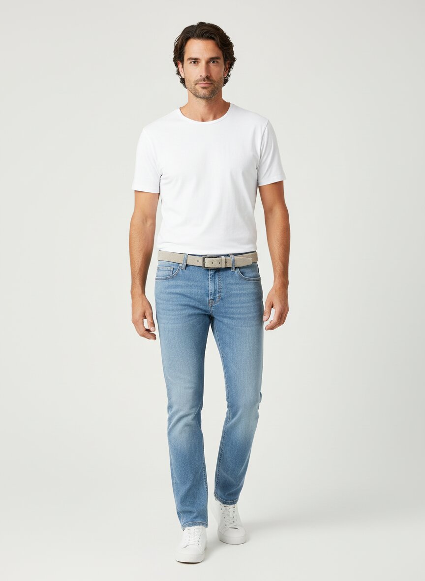 Die Pipe besticht durch ihre innovative Materialmischung aus Baumwolle, recyceltem Polyester und Viskose, die dem Denim eine seidige Griffigkeit und natürliche Bewegungsfreiheit verleiht. Der hohe Baumwollanteil sorgt für Atmungsaktivität und Langlebigkeit, während der Elasthananteil die Passform über den Tag hinweg bewahrt. Im Regular Fit sitzt die Jeans ausgewogen an Oberschenkel und Unterschenkel – ideal für Alltag und Business gleichermaßen. Die klassische Five-Pocket-Konstruktion wird durch eine praktische Safe Pocket am Innenbund ergänzt, die Kleinteile zuverlässig sichert. Alberto perfektioniert seit über 100 Jahren die Kunst der Hosenpassform – diese Pipe dokumentiert das Handwerk des Mönchengladbacher Traditionsunternehmens mit technischer Präzision und Nachhaltigkeitsanspruch. Die OEKO-TEX® STANDARD 100-Zertifizierung unterstreicht die schadstofffreie Verarbeitung.Unser Tipp: Kombinieren Sie die Pipe mit einem weißen Leinenhemd und Mokassins für einen mühelosen Smart-Casual-Look, der von Frühling bis Sommer trägt.