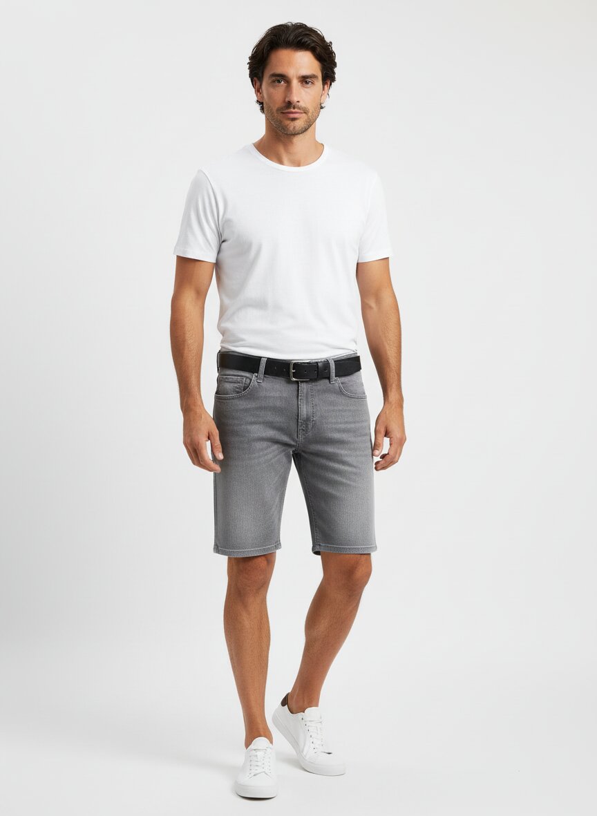 Hellgraue Jeansshorts mit subtilen Bleich- und Falteneffekten