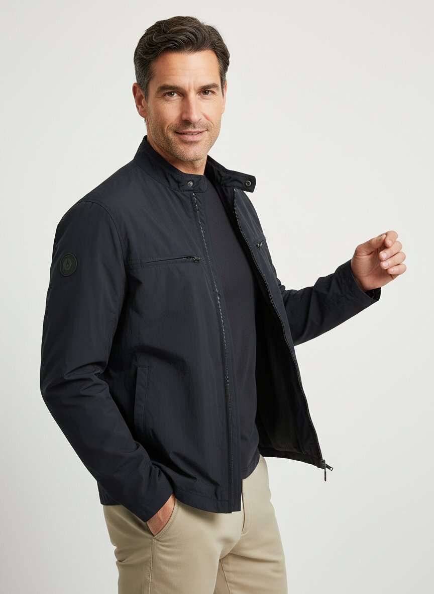 Die charakteristische Crinkle-Optik verleiht dieser BELSTAFF Grid-Jacke eine subtile Oberflächenstruktur, die Bewegungsfreiheit und zeitgenössischen Stil vereint. Das recycelte Polyamid-Mix-Gewebe liegt leicht auf der Haut und trocknet schnell, während die wasserabweisende Beschichtung spontane Regenschauer problemlos abhält. Der durchgehende Frontreißverschluss, die Brusttaschen mit Reißverschluss und seitlichen Eingrifftaschen machen diese Jacke zum zuverlässigen Begleiter im urbanen Alltag wie auf Wochenendausflügen. Besonders praktisch: die Belüftungsösen unter den Ärmeln sorgen an wärmeren Tagen für zusätzliche Luftzirkulation, während der gerippte Kragenrand und der Stehkragen mit Knopf für stabilen Sitz garantieren. BELSTAFF verbindet seit 1924 britische Abenteurer-Tradition mit modernem Material-Engineering – hier zeigt sich das in recycelten High-Tech-Fasern, die Nachhaltigkeit und Performance gleichzeitig liefern.Unser Tipp: Tragen Sie die Grid-Jacke über einem weißen Baumwoll-Shirt und einer dunklen Chino für einen mühelosen Smart-Casual-Look, der vom Büro direkt ins Wochenende passt.