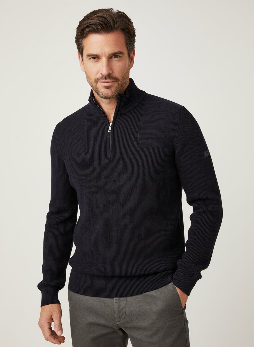 Die markanten Strick-Akzente verleihen diesem Troyer eine dezente, aber charaktervolle Oberflächenstruktur, die ihn von Standard-Modellen unterscheidet. Die mercerisierte Baumwolle schimmert subtil und bietet eine seidenartig glatte Haptik, die sich angenehm auf der Haut anfühlt und ihre Form dauerhaft bewahrt. Der durchgehende Reißverschluss ermöglicht flexibles An- und Ausziehen und macht den Troyer zum verlässlichen Begleiter für Business-Casual und Freizeit gleichermaßen. Mit einer Rückenlänge von etwa 67 cm bei Größe M sitzt der Troyer präzise geschnitten und lässt sich mühelos über leichteren Hemden oder direkt auf der Haut tragen. BELSTAFF verbindet seit 1924 britische Abenteurer-Tradition mit zeitloser Funktionalität – jedes Stück erzählt von Qualität und bewährtem Handwerk.Unser Tipp: Kombinieren Sie diesen Troyer mit einer hellen Chino und Lederschnürschuhen für einen eleganten Casual-Look, der auch im Büro überzeugt.