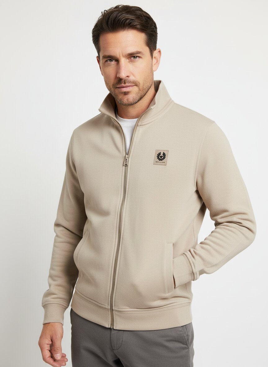 Diese Sweatjacke von BELSTAFF besticht durch ihre schlichte Eleganz in warmem Beige – ein Farbton, der zwischen Natur und Raffinesse schwebt. Die reine Baumwolle liegt weich auf der Haut und bietet maximale Atmungsaktivität, ohne dabei an Struktur zu verlieren. Der durchgehende Reißverschluss und der markante Stehkragen geben der Jacke eine sportlich-urbane Silhouette, die sowohl zur Freizeit als auch zum Smart Casual passt. Die seitlichen Leistentaschen kombinieren Funktionalität mit klassischem Design und bieten praktischen Stauraum ohne optische Überlastung. Seit 1924 steht BELSTAFF für britische Abenteurer-Tradition – gewachste Baumwolle und Premium-Materialien, die von Legenden wie Steve McQueen geschätzt wurden und heute moderne Expeditionen ebenso prägen wie urbane Alltage. Für die wärmere Jahreszeit bietet diese Sweatjacke ideales Layering: leicht genug zum Solo-Tragen, robust genug als Übergangsstück über einem T-Shirt.Unser Tipp: Kombinieren Sie die Jacke mit einer dunklen Chino und weißen Sneakern für einen zeitlosen Wochenend-Look, der Sportlichkeit und Eleganz verbindet.