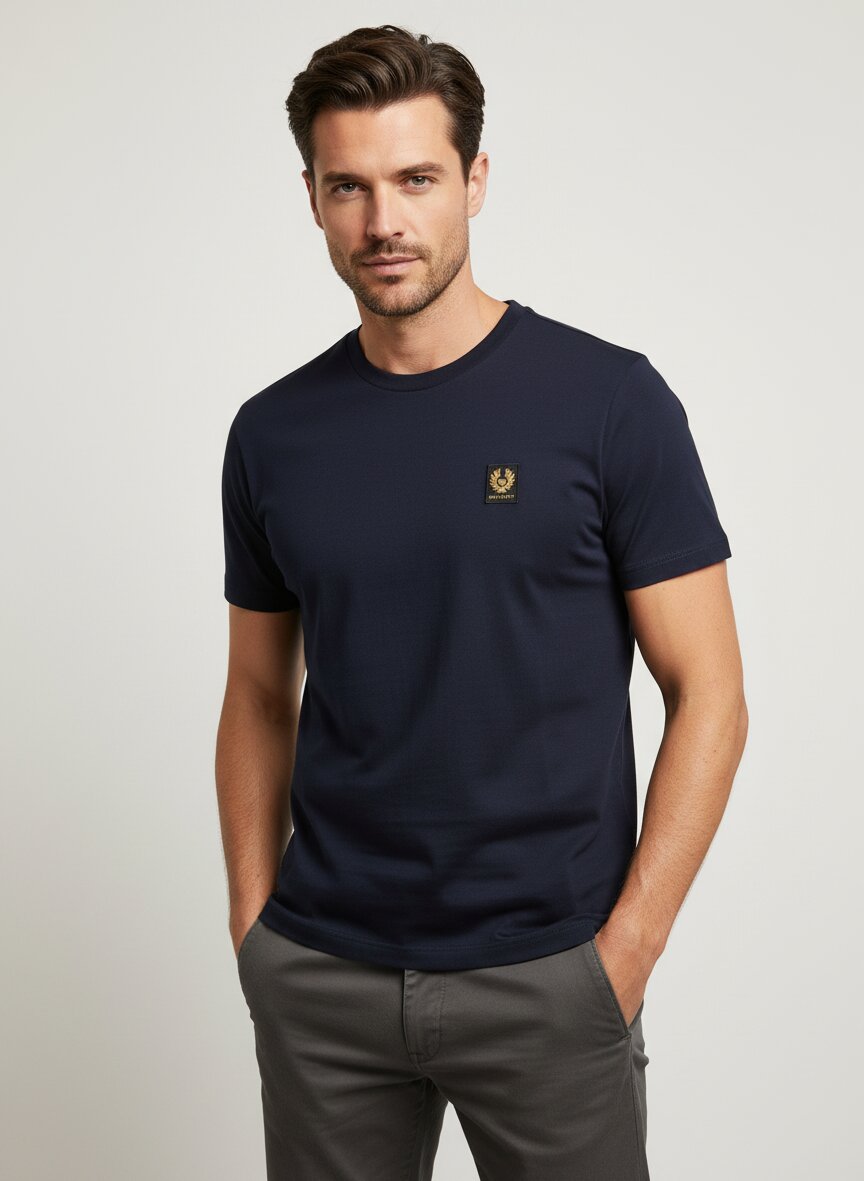 Das satte Dunkelblau verleiht diesem T-Shirt eine ruhige Präsenz, die sich mühelos in jeden Kleiderschrank fügt. Die reine Baumwolle fühlt sich weich an und transportiert Feuchtigkeit zuverlässig nach außen – ideal für warme Tage. Der klassische Rundhalsausschnitt rahmt das Gesicht dezent ein und macht das Shirt zum vielseitigen Begleiter für Alltag und Freizeit. Die sorgfältige Verarbeitung zeigt sich in sauberen Nähten und einer formstabilen Passform. Belstaff bringt seine über hundertjährige Erfahrung in robuster Outdoor-Bekleidung in jedes Kleidungsstück ein – auch in die scheinbar simplen Basics.Unser Tipp: Tragen Sie das T-Shirt unter einer offenen Lederjacke für den typischen Belstaff-Look oder kombinieren Sie es mit hellen Chinos für einen entspannten Sommerstil.