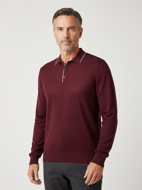 Das satte Weinrot verleiht diesem Pullover eine warme, selbstbewusste Ausstrahlung, während die Knopfleiste am Polokragen für variable Tragemöglichkeiten sorgt. Die reine Merinowolle fühlt sich besonders weich an, reguliert die Körpertemperatur optimal und kratzt nicht auf der Haut. Der Regular Fit sitzt bequem ohne aufzutragen – ideal für Business-Casual-Kombinationen oder entspannte Wochenenden. Feine Kontraststreifen am Kragen sowie die geminderten Armausschnitte zeigen die durchdachte Verarbeitung bis ins Detail. Ben Sherman interpretiert hier britische Stricktradition mit der für die Marke typischen Liebe zum präzisen Detail und zeitgemäßen Schnitten. Dieser Pullover eignet sich hervorragend für die kühleren Monate, wenn Sie Wert auf natürliche Wärme und stilvolle Erscheinung legen.Unser Tipp: Kombinieren Sie den Pullover zu einer dunkelblauen Chino und braunen Chelsea Boots für einen souveränen Herbst-Look.