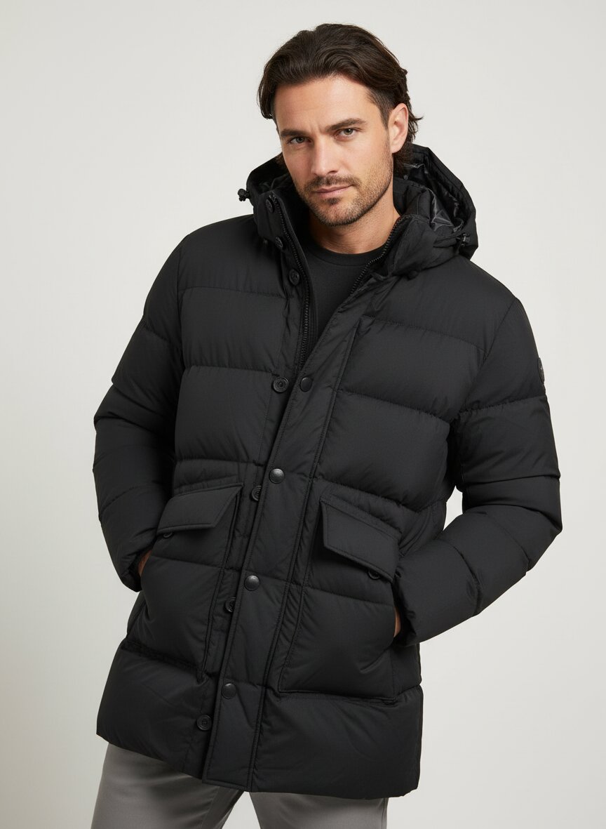 Die strukturierte Crinkle-Oberfläche verleiht diesem schwarzen Daunenparka eine moderne, technische Optik mit urbanem Charakter. Das wasserabweisende Polyamid-Gewebe schützt zuverlässig vor Wind und Wetter, während die hochwertige 90/10 Daunenfüllung für wohlige Wärme ohne Gewicht sorgt. Der durchdachte Zwei-Wege-Reißverschluss ermöglicht flexible Bewegungsfreiheit beim Sitzen oder Radfahren, die verstellbare Taille und der regulierbare Saum garantieren perfekten Sitz. Die cleveren 2-in-1 Seitentaschen bieten schnellen Zugriff oder sicheren Verschluss unter der Patte, zusätzlich bewahrt eine Innentasche wichtige Wertsachen auf. BLAUER USA bringt mit diesem Parka seine Polizei-Heritage ins moderne Stadtbild – funktionale Details treffen auf zeitgemäßes Design für urbane Herausforderungen. Ideal für die kalte Jahreszeit, wenn Schutz und Stil gleichermaßen gefragt sind.Unser Tipp: Tragen Sie den Parka über einem grauen Rollkragenpullover und dunklen Jeans für einen souveränen Winter-Look.