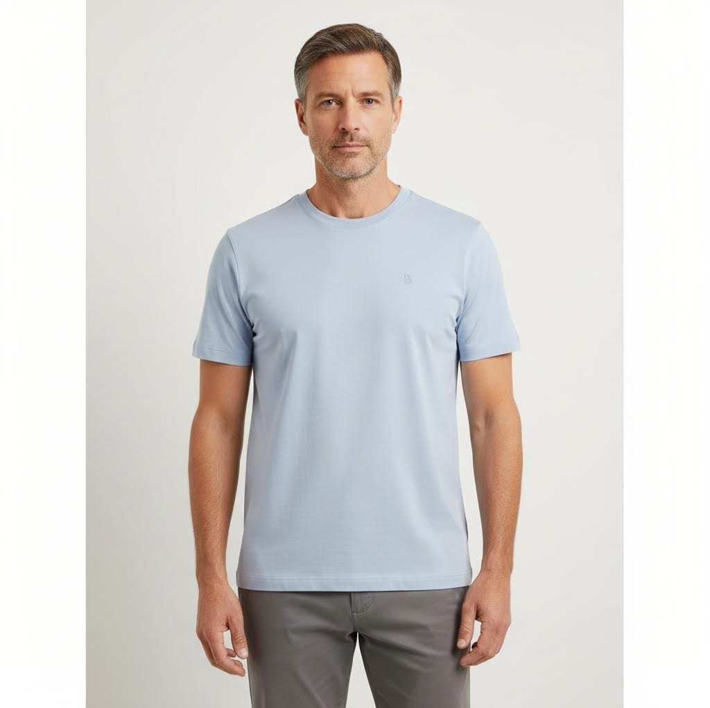 Das Ryan T-Shirt besticht durch sein zartes Hellblau und die hochwertige, mercerisierte Baumwolle, die dem Jersey eine seidenartige Oberfläche und natürliche Glanzoptik verleiht. Das Material liegt weich auf der Haut, behält seine Form dauerhaft und trocknet schnell – ideal für warme Tage ohne Kompromisse bei der Haltbarkeit. Der klassische Rundhals-Ausschnitt und die entspannte Passform machen es zum vielseitigen Begleiter für Alltag und Freizeit. Europäische Verarbeitung sichert die gewohnte BOGNER-Qualität bis ins kleinste Detail. BOGNER verbindet seit 1932 alpine Performance mit Münchner Handwerk – auch bei essentiellen Basics wie diesem T-Shirt zeigt sich die Philosophie: Funktionalität ohne Verzicht auf Eleganz.Unser Tipp: Kombinieren Sie das Ryan T-Shirt mit einer dunklen Leinenhose und weißen Sneakern für einen mühelosen Sommer-Look, der Qualität subtil ausstrahlt.