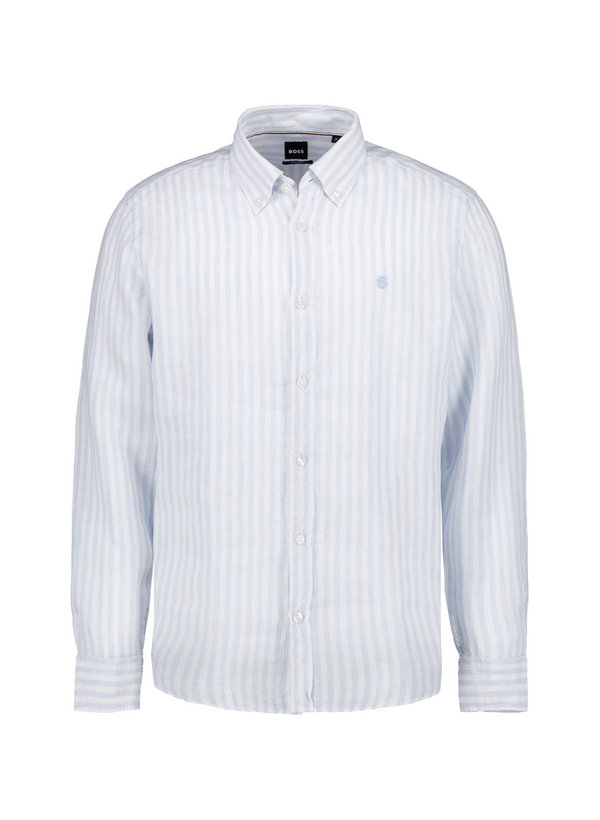 BOSS Black, Hemd, Regular, Reines Leinen, Button-Down, hellblau gestreift