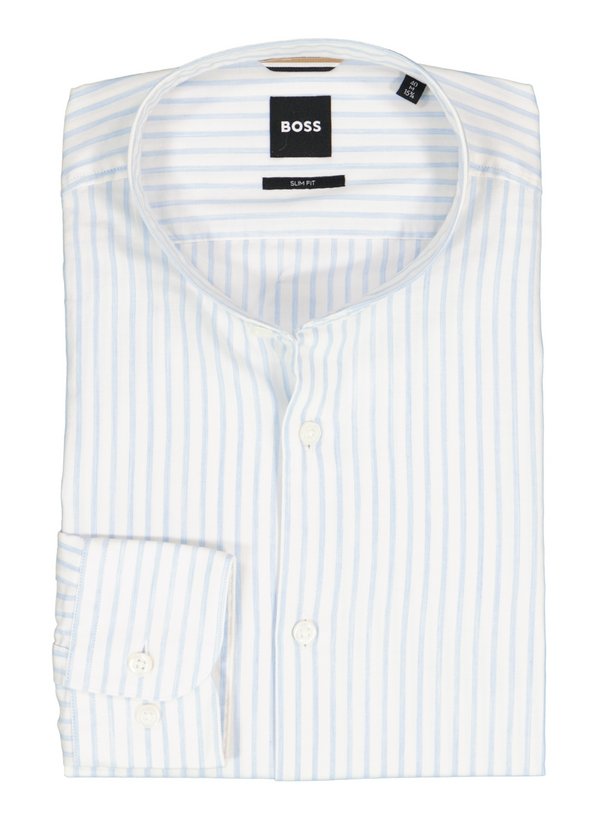 Das gestreifte BOSS Hemd mit Stehkragen ist vielseitig einsetzbar – sowohl für Business-Looks mit Anzug als auch für smart-casual Kombinationen mit Jeans oder Chinos.