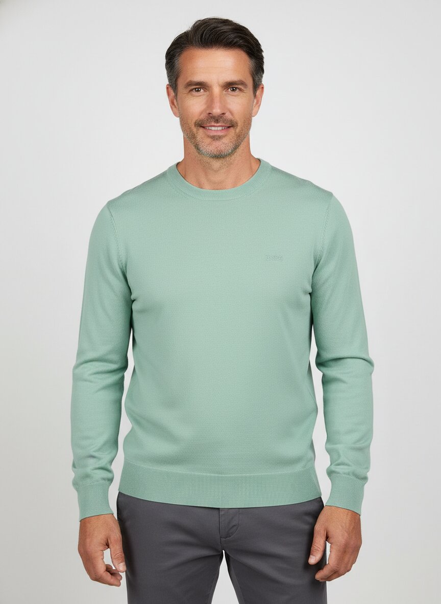 Der Pullover Upacas besticht durch seine intensive grüne Färbung und den klassischen Rundhals-Ausschnitt, der sowohl unter Blazern als auch solo trägt. Die 100-prozentige Baumwolle liegt weich auf der Haut und bietet optimale Atmungsaktivität für warme Jahreszeiten, ohne dabei in Form zu gehen. Mit einer Rückenlänge von etwa 66 cm bei Größe M sitzt der Schnitt präzise am Körper – weder zu eng noch zu locker. Die schlichte Gestaltung ohne ablenkende Details macht ihn zum vielseitigen Basis-Piece für Business-Looks und urbane Alltagskombinationen. BOSS Black verbindet deutsche Ingenieurskunst mit moderner Eleganz: Jedes Stück wird mit Präzision entwickelt, um Funktionalität und zeitgemäße Ästhetik zu vereinen.Unser Tipp: Kombinieren Sie den grünen Pullover mit einer hellen Chino und Loafern für einen sophistizierten Business-Casual-Look, oder tragen Sie ihn über einem weißen T-Shirt für entspannte Wochenendtage.