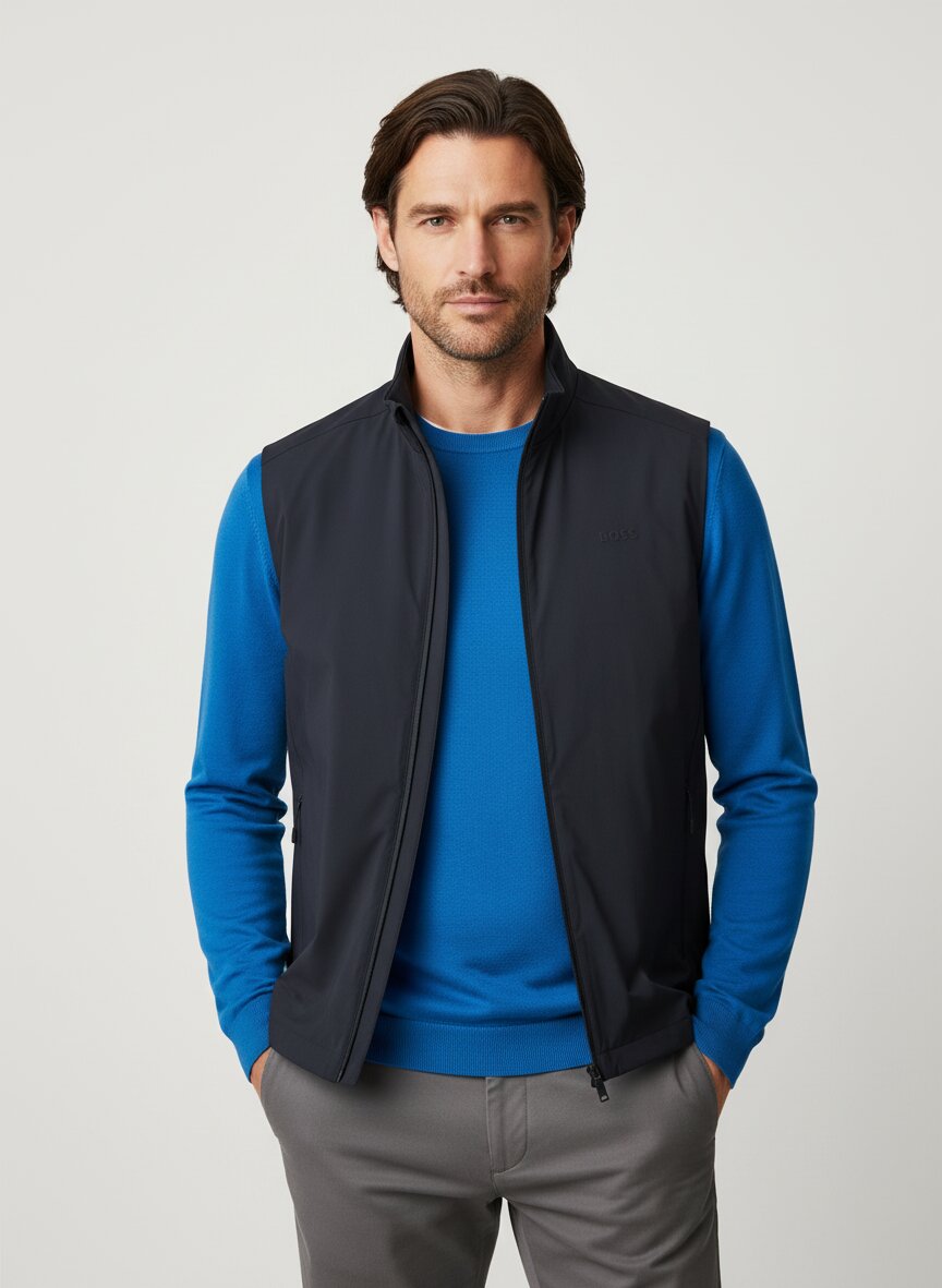 Die Steppweste Lite besticht durch ihre schlanke Silhouette und das feingliedrige Steppfutter, das Wärme speichert ohne aufzutragen. Das Polyesterfutter liegt angenehm auf der Haut und trocknet schnell, während die wasserabweisende Mikrofaser-Oberfläche vor Spritzwasser schützt. Der durchgehende Reißverschluss mit Stehkragen bietet maximale Flexibilität – ob auf dem Golfplatz oder in der Stadt. Die seitlichen Zippertaschen halten Kleinteile sicher verwahrt, und die Innensaum-Weitenregulierung passt sich der individuellen Silhouette an. BOSS Green verbindet Golfwear-Erbe mit urbaner Sportlichkeit – funktional, präzise und ohne überflüssige Elemente.Unser Tipp: Kombinieren Sie die Weste über einem weißen Funktionsshirt und einer dunklen Chino für einen modernen Golf-Look, der auch im Alltag überzeugt.
