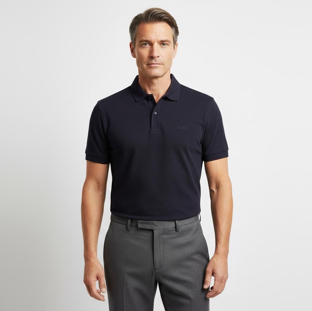 Das Polo-Shirt Pio besticht durch sein tiefes Dunkelblau und die charakteristische Piqué-Struktur, die dem Material Griffigkeit und optische Tiefe verleiht. Die reine Baumwolle liegt angenehm auf der Haut, atmet zuverlässig und behält auch nach häufigem Tragen seine Form – ein Material, das mit den Jahren nur besser wird. Mit Kurzarm und klassischer Knopfleiste prägt dieses Polo den urbanen Sportlook vom Golfplatz bis ins Büro. Der Regular Fit sitzt entspannt und präzise zugleich, ohne zu binden oder zu flattern. BOSS Green verbindet die Golf-Tradition des Hauses mit modernem Lifestyle-Design – funktional, zeitlos und ohne Kompromisse bei der Verarbeitung.Unser Tipp: Kombinieren Sie das Polo mit einer hellen Chino und Segeltuchschuhen für einen mühelosen Sommer-Look, der vom Wochenende bis zur lockeren Geschäftsstunde passt.