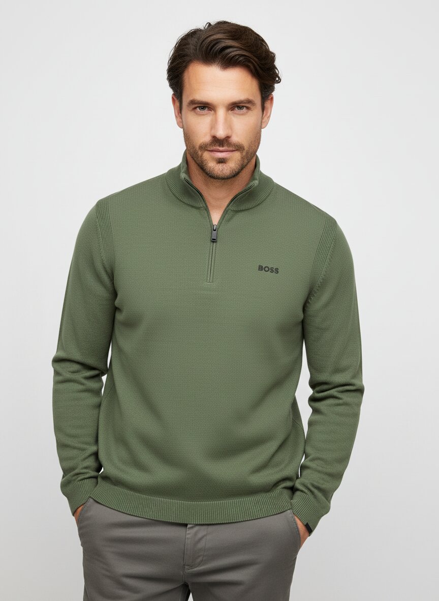 Dieser Troyer besticht durch strategisch platzierte Perforationen an Nacken und Achseln, die gezielt für Luftzirkulation sorgen und den Stoff atmungsaktiv halten. Die nachhaltige Baumwolle schmiegt sich angenehm an die Haut und bietet dabei die robuste Struktur eines Feinstricks, der auch nach häufigem Tragen seine Form bewahrt. Der klassische Stehkragen mit durchgehendem Reißverschluss ermöglicht schnelle Temperaturanpassung – ideal für Übergangstage oder sportliche Aktivitäten im Freien. Rippenstrickbündchen an Ärmeln und Saum sorgen für sicheren Halt ohne Verrutschen. BOSS Green verbindet Golfwear-Erbe mit urbaner Funktionalität – jedes Detail dient dem aktiven Alltag, nichts ist Dekoration.Unser Tipp: Kombinieren Sie den Troyer mit einer leichten Chino und Sneakern für einen sportlich-eleganten Look, der mühelos vom Wochenende ins Büro passt.