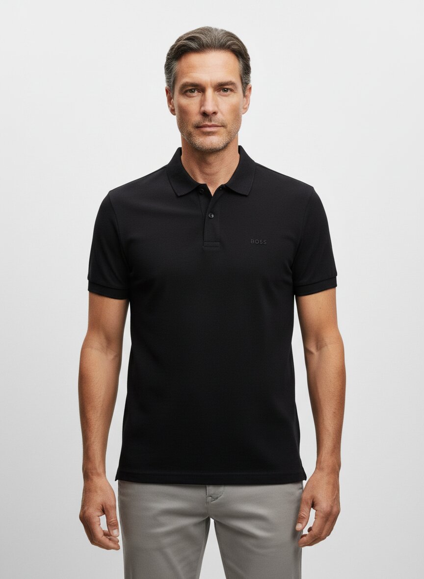 Das schwarze Polo l\u00E4sst sich hervorragend mit einer hellen Chino und wei\u00DFen Sneakern f\u00FCr einen modernen Smart-Casual-Look kombinieren, der von Fr\u00FChling bis Sommer funktioniert.