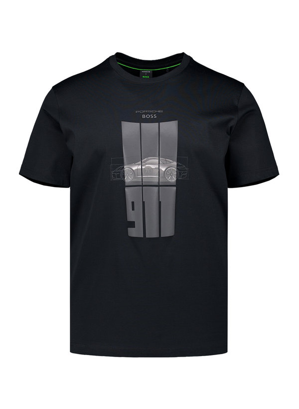 BOSS Green, T-Shirt Spirit 70, PORSCHE X BOSS, Baumwolle mercerisiert, schwarz