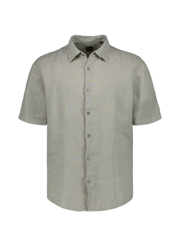 BOSS Orange, Kurzarmhemd Rash, Regular, Reines Leinen, Kent, graugrün