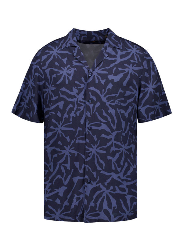 BOSS Orange, Kurzarmhemd Rayer, Viskose, dunkelblau gemustert