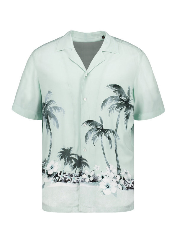 BOSS Orange, Kurzarmhemd Rayer, Viskose, türkis gemustert