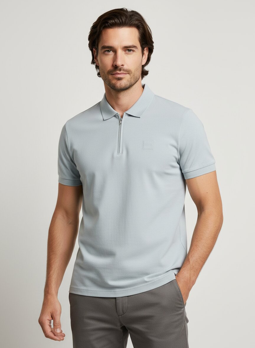 Ein dezenter Reißverschluss im Kragen verleiht diesem klassischen Polo eine moderne Note – praktisch für schnelle Temperaturwechsel und lässig im Alltag. Das hochwertige Baumwoll-Piqué mit 5% Elasthan sitzt angenehm auf der Haut, behält seine Form und bietet optimale Bewegungsfreiheit. Das Modell Passerzip verbindet urbane Casualness mit zeitloser Eleganz und funktioniert sowohl im Office als auch am Wochenende. Verstärkendes Band im Nacken und Rippenstrickbündchen an den Ärmeln sorgen für zusätzliche Haltbarkeit und Tragekomfort. BOSS Orange steht für urbanen Lifestyle mit authentischem Vintage-Charakter – hochwertige Materialien treffen auf unkonventionelle Details für kreative Individualisten.Unser Tipp: Kombinieren Sie das silberne Polo mit einer dunklen Chino und weißen Sneakern für einen modernen Smart-Casual-Look, der vom Büro bis zum Feierabend passt.
