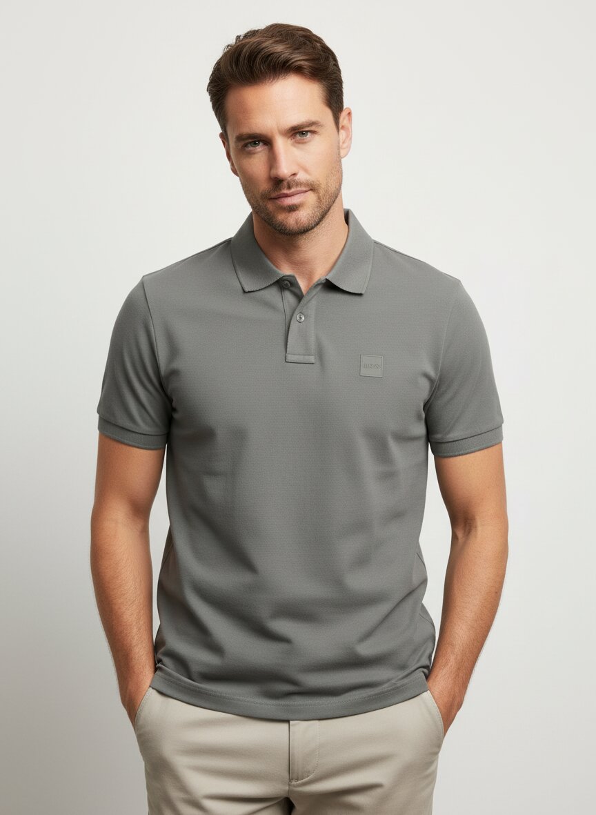 Das Polo-Shirt Passenger besticht durch seine subtile dunkelgraugrüne Färbung und die charakteristische Piqué-Struktur, die dem Klassiker zeitlose Tiefe verleiht. Der Baumwollmix mit 5 % Elasthan sitzt angenehm auf der Haut, bietet optimale Bewegungsfreiheit und behält seine Form über viele Tragezyklen hinweg. Im schlanken Slim Fit präsentiert sich das Shirt als verlässlicher Begleiter für Business-Casual und urbane Alltags-Looks. Die verstärkte Nackenpartie und die Rippenstrickbündchen an den Ärmeln sorgen für zusätzliche Haltbarkeit und saubere Verarbeitung. BOSS Orange verbindet deutsche Handwerkstradition mit ungezwungener Lässigkeit – nachhaltig gewonnene Baumwolle und authentische Details für Individualisten, die Qualität erkennen.Unser Tipp: Kombinieren Sie das Polo mit einer hellen Chino und Loafern für einen mühelosen Smart-Casual-Look, der vom Büro bis zum Wochenendbrunch funktioniert.