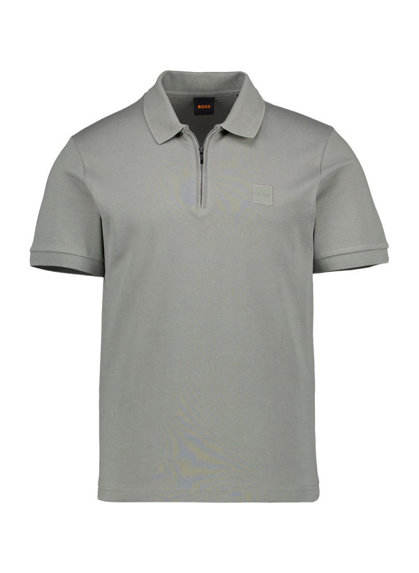 BOSS Orange, Zip-Polo Passerzip, Baumwoll-Piqué, graugrün