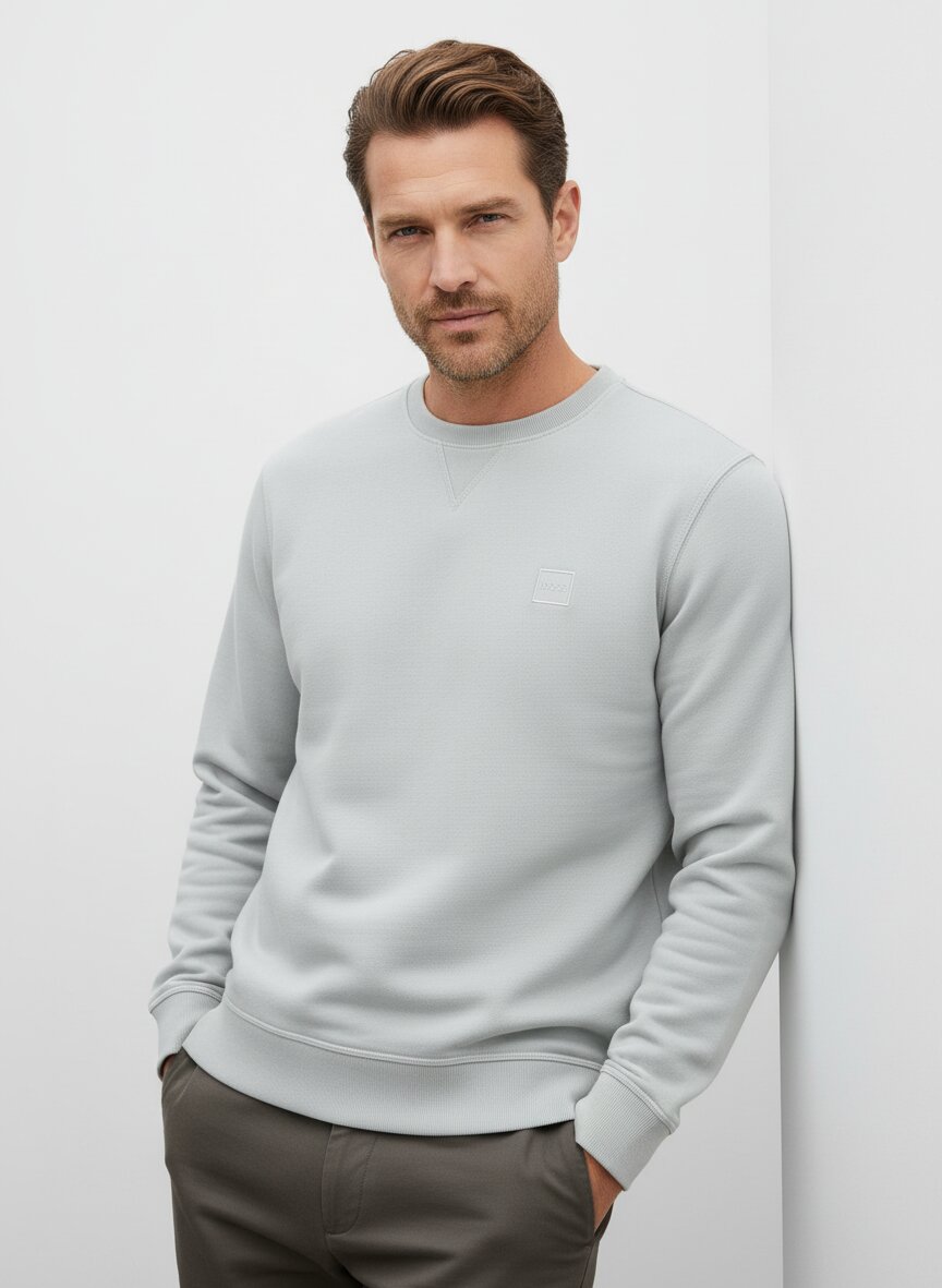 Die dezente Hellgraugrün-Färbung verleiht diesem Sweatshirt eine zeitlose Eleganz, die sich mühelos in jeden urbanen Alltag einfügt. Das Material besteht zu 100 Prozent aus Baumwolle und besticht durch angenehme Weichheit sowie hohe Formbeständigkeit nach dem Waschen. Der klassische Rundhals-Ausschnitt und die entspannte Passform machen das Modell Westart zum verlässlichen Begleiter für Freizeit und lockere Bürotage. Mit einer Rückenlänge von etwa 70 Zentimetern bei Größe M sitzt das Sweatshirt perfekt zwischen Hüfte und Oberschenkel – ideal für Layering über Hemden oder Shirts. BOSS Orange verbindet deutsche Handwerkstradition mit urbaner Lässigkeit und setzt dabei auf nachhaltig gewonnene Materialien, die Qualität und Verantwortung gleichermaßen verkörpern.Unser Tipp: Kombinieren Sie das Sweatshirt mit einer dunklen Jeans und weißen Sneakern für einen authentischen Urban-Look, der vom Frühjahr bis in den Sommer funktioniert.