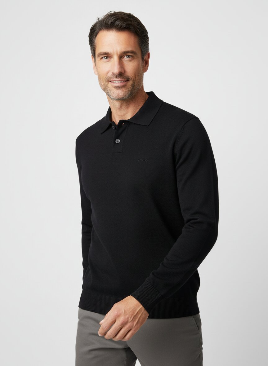 Der Pullover Asac verbindet 85 % Baumwolle mit 15 % Kapok zu einem Material, das leicht, temperaturausgleichend und dabei überraschend robust wirkt. Die feine Strickstruktur liegt angenehm auf der Haut und bietet maximalen Tragekomfort ohne zu beschweren. Mit Polokragen und durchgehender Knopfleiste präsentiert sich das Modell als vielseitiger Urban-Klassiker für Büro und Freizeit. Die dezente Stickerei auf Brustöhe links unterstreicht die BOSS-Orange-Handschrift ohne Lautstärke. BOSS Orange verkörpert urbanen Lifestyle mit entspannter Lässigkeit – dieser Pullover zeigt genau diese Philosophie: hochwertige Materialien trifft unkonventionelle Leichtigkeit für kreative Individualisten.Unser Tipp: Kombinieren Sie den Pullover mit einer hellen Chino und Sneakern für einen zeitlosen Wochenend-Look oder tragen Sie ihn über einem weißen T-Shirt für zusätzliche Layering-Tiefe in der Übergangszeit.