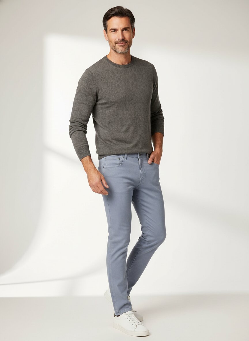 Ja, die Baumwoll-Melange mit elastischem Griff ist pflegeleicht und strapazierfähig. Der Stretch-Anteil trägt zur Formbeständigkeit bei und reduziert Faltenbildung.