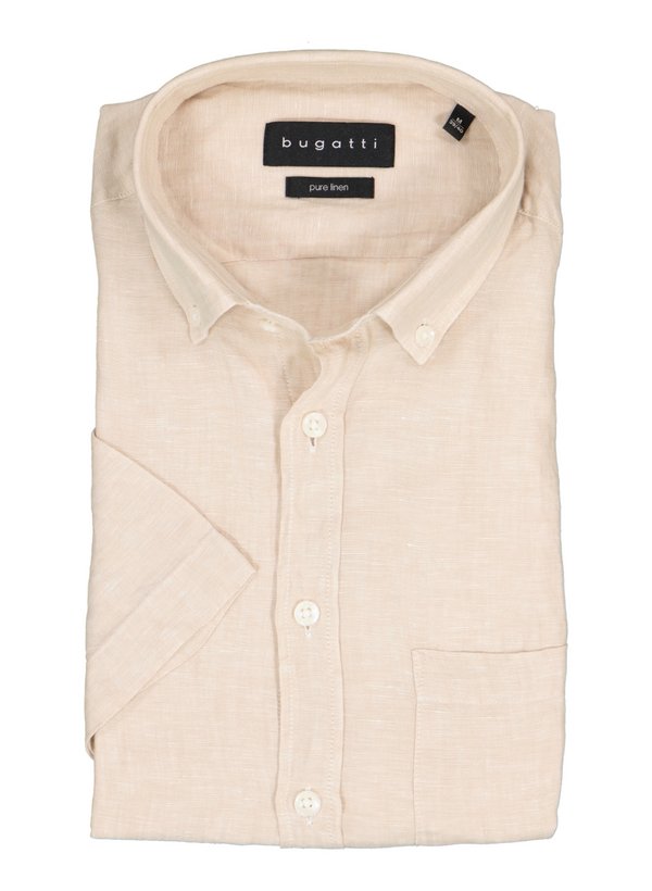 bugatti, Kurzarmhemd, Reines Leinen, Button-Down, Brusttasche, beige