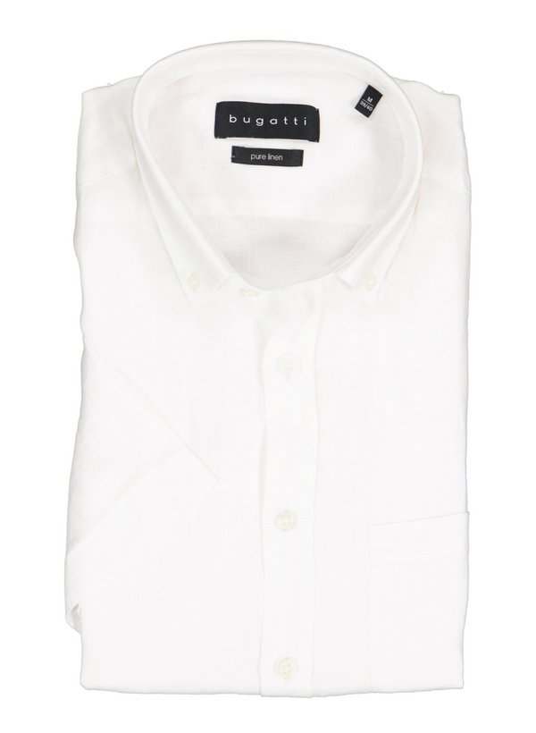 bugatti, Kurzarmhemd, Reines Leinen, Button-Down, Brusttasche, weiß