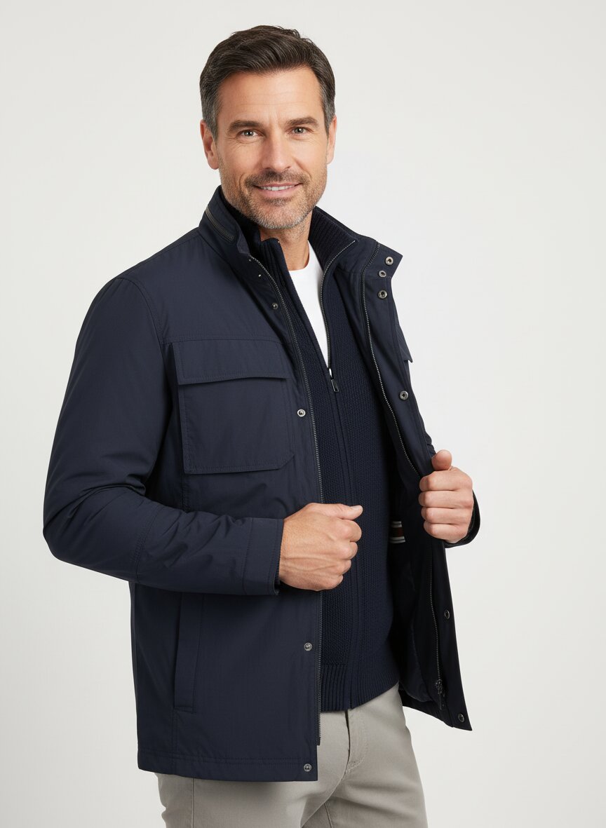 Tragen Sie die Jacke über einem hellen Pullover und einer dunklen Chino für einen zeitlosen Urban-Look. Diese Kombination funktioniert perfekt vom Frühling bis zum Sommer und wirkt elegant und modern.
