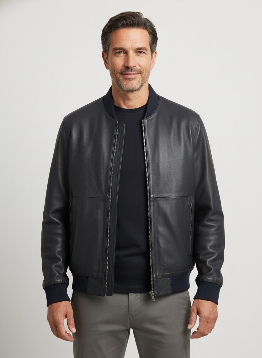 Dieser Lederblouson besticht durch weiches Lammleder in einem zeitlosen Marineblau, das sich mühelos in jeden Kleiderschrank integriert. Das geschmeidige Material schmiegt sich angenehm an den Körper und entwickelt mit der Zeit eine natürliche Patina, die dem Blouson zusätzlichen Charakter verleiht. Der Zwei-Wege-Reißverschluss, der markante Collegekragen und die seitlichen Reißverschlusstaschen machen ihn zum vielseitigen Begleiter für urbane Tage und Übergangsphasen. Rippenstrick an Kragen, Ärmeln und Saum sorgen für eine elegante Silhouette und halten gleichzeitig warm. Bugatti verbindet seit 1978 europäische Handwerkskunst mit modernem Design – dieser Blouson ist ein Beispiel dafür, wie die Marke kontinentale Eleganz in tragbare Form bringt.Unser Tipp: Kombinieren Sie den Blouson mit einer hellen Chino und weißen Sneakern für einen entspannten Smart-Casual-Look, oder tragen Sie ihn über einem Hemd zu dunklen Jeans für klassische Eleganz.