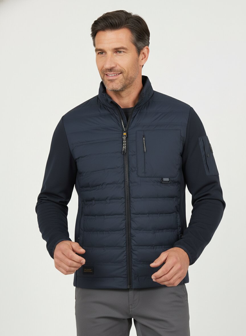 Dunkelblau mit innovativem Heatpress-Stepp und Kontrastärmeln