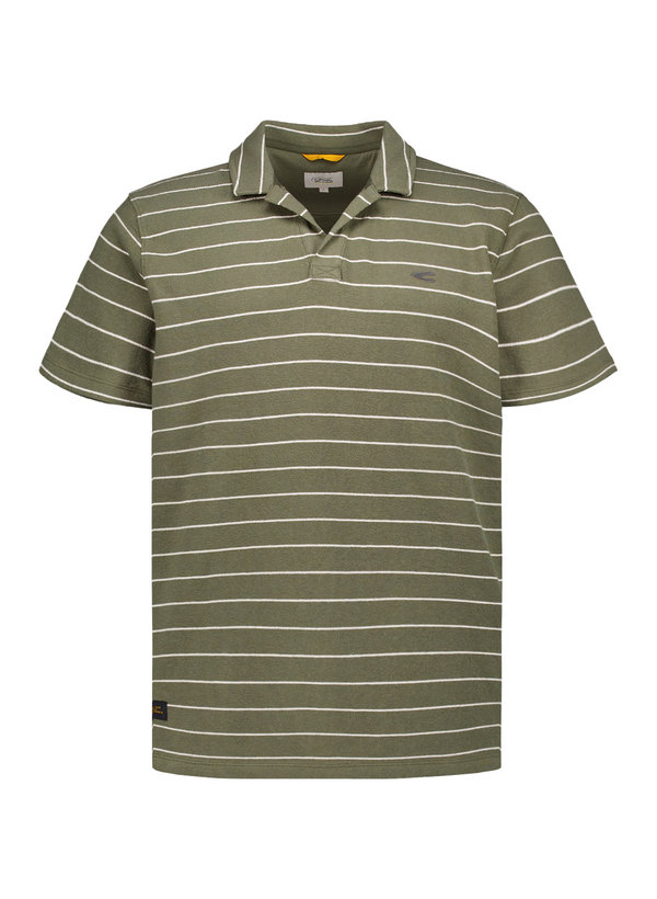 camel active, Polo-Shirt, Baumwollstrick, oliv-beige gestreift