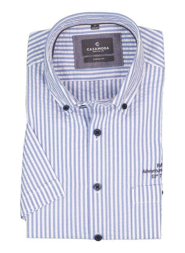 CasaModa, Kurzarmhemd, Casual, Seersucker, Button-Down, Brusttasche, blau gestreift