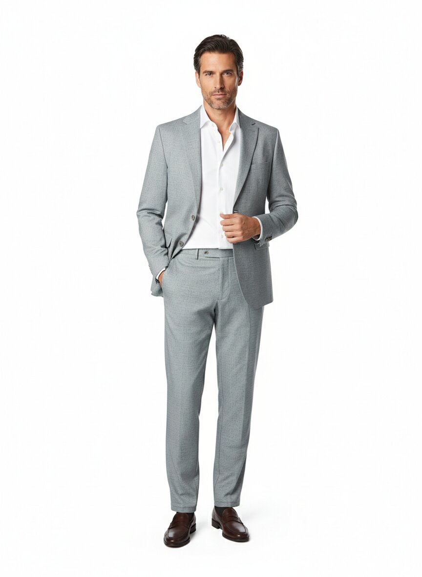 Unser Tipp: Kombinieren Sie den Anzug mit einem cremefarbenen Hemd und dunklen Derby-Schuhen für einen eleganten Look, der von Business bis Smart Casual funktioniert.