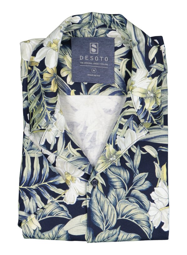 DESOTO, Kurzarmhemd Lido, Regular Fit, Jersey, Revers, grün floral