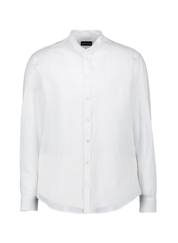 EMPORIO ARMANI, Hemd, Reines Leinen, Stehkragen, weiß