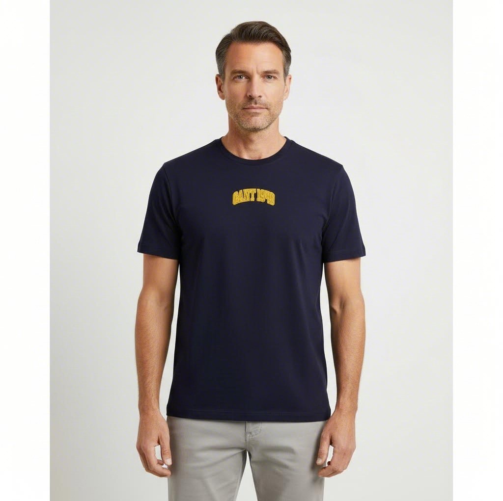 Ein tiefes Dunkelblau bildet die Grundlage dieses zeitlosen T-Shirts, während eine subtile Logo-Applikation auf der Brust dem Klassiker Charakter verleiht. Die reine Baumwolle schmiegt sich angenehm an die Haut und überzeugt durch hohe Atmungsaktivität sowie Langlebigkeit auch nach häufigem Waschen. Mit seinem Rundhals-Ausschnitt und dem verstärkenden Nackenband wirkt das Shirt formbeständig und sitzt zuverlässig. Das schlichte Design macht es zum Universalist für Freizeit und Alltag – ob unter einem Hemd, zu Chinos oder als Basis für Layering. GANT verkörpert seit 1949 den amerikanischen Preppy-Stil mit skandinavischer Präzision: zeitlos, funktional und ohne modische Umschweife.Unser Tipp: Kombinieren Sie das Shirt mit einer hellen Baumwoll-Chino und weißen Sneakern für einen klassisch-entspannten Look, der über mehrere Jahreszeiten trägt.