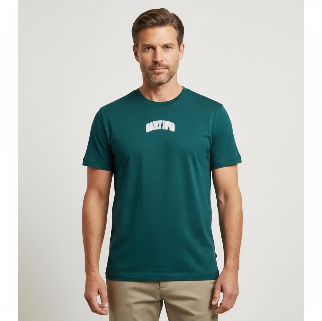 Dieses T-Shirt besticht durch sein sattes, zeitloses Grün und die dezente Logo-Applikation auf der Brust – ein Erkennungszeichen von GANT, das Understatement mit Qualitätsbewusstsein verbindet. Die reine Baumwolle schmiegt sich angenehm an die Haut und bietet maximale Atmungsaktivität für warme Tage. Das verstärkte Nackenband sorgt für Langlebigkeit und behält seine Form auch nach häufigem Tragen und Waschen. Der klassische Rundhals-Ausschnitt macht das Shirt vielseitig kombinierbar – ob zu Chinos, Jeans oder Shorts. GANT verkörpert seit 1949 die sportlich-elegante Tradition amerikanischer Campusmode und verbindet diese mit skandinavischer Qualitätshandschrift.Unser Tipp: Kombinieren Sie das grüne T-Shirt mit einer hellen Baumwoll-Chino und weißen Sneakern für einen frischen, preppy Look – ideal für Frühjahr und Sommer.