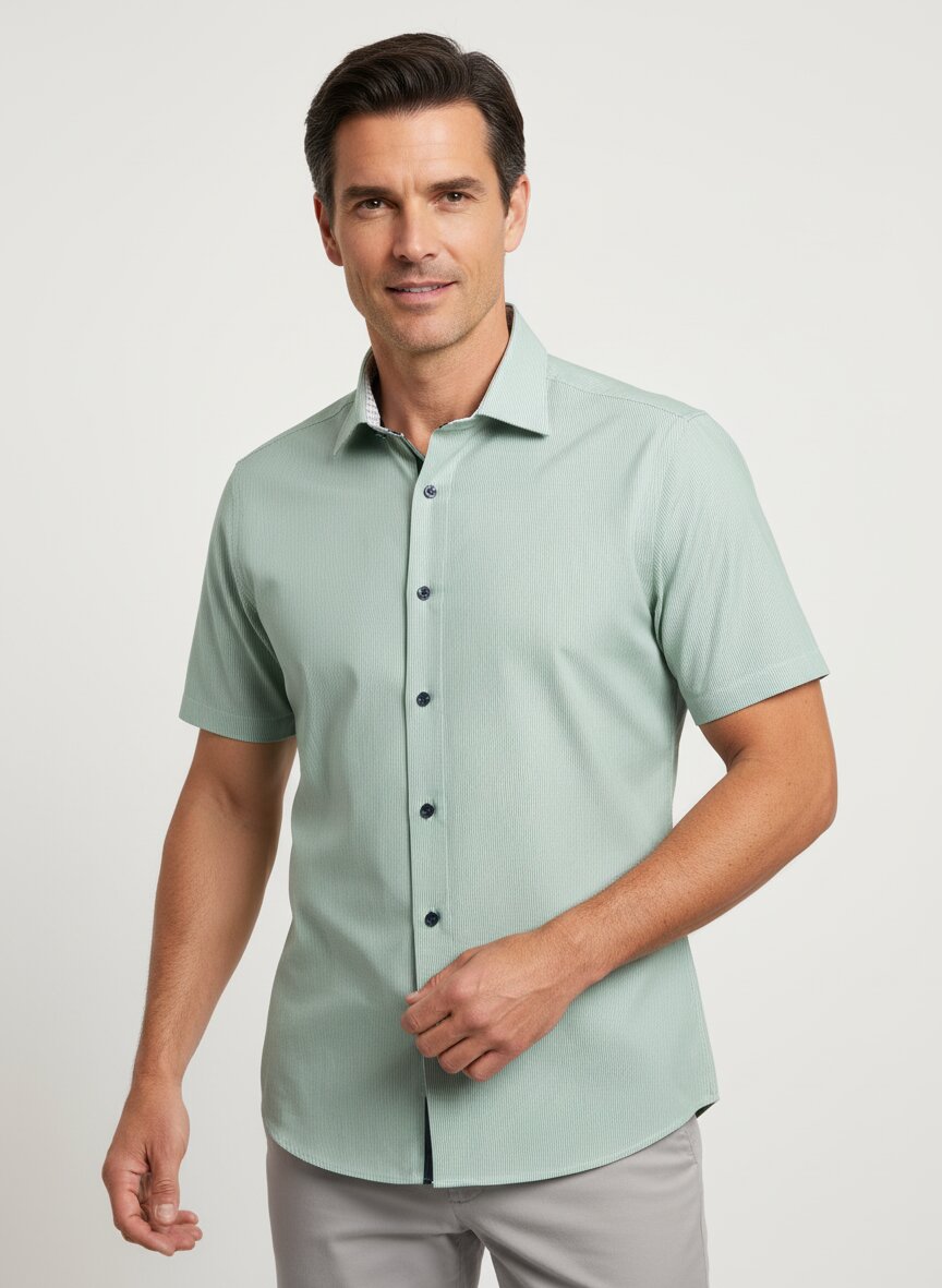 Kurzarmhemd, New Modern, Baumwolle, Kent, grün meliert