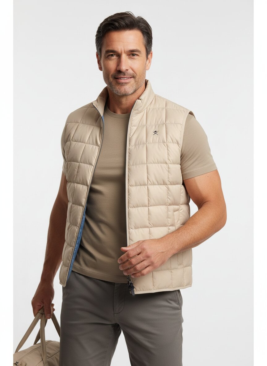 Steppweste in warmem Beige mit feiner Mikrofaser-Struktur