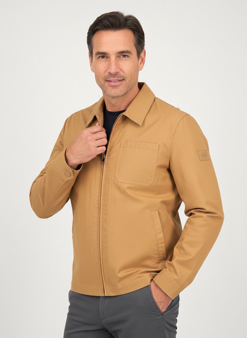 Die harmonische Mischung aus 60 % Baumwolle und 40 % Polyamid macht diesen Blouson zu einem robusten Begleiter für wechselhafte Tage – die wasserabweisende Ausrüstung hält Spritzwasser zuverlässig ab, ohne die Atmungsaktivität zu beeinträchtigen. Der Umlegekragen und der durchgehende Reißverschluss unterstreichen den klassisch-sportlichen Schnitt, während die seitlichen Reißverschlusstaschen mit verdeckten Druckknöpfen praktische Sicherheit bieten. Geknöpfte Ärmelabschlüsse und ein elastischer Saumabschluss im Rückteil sorgen für einen präzisen Modern Fit, der zwischen Business und Freizeit mühelos funktioniert. Das dezente Braun passt zu Chinos, Jeans und Wollhosen gleichermaßen. HECHTER PARIS verkörpert seit 1962 französische Eleganz im Alltag – funktional, zeitlos und ohne Umschweife.Unser Tipp: Kombinieren Sie den Blouson mit einer hellen Chino und weißen Sneakern für einen urbanen Wochenend-Look, oder tragen Sie ihn über einem Hemd für geschäftliche Anlässe.