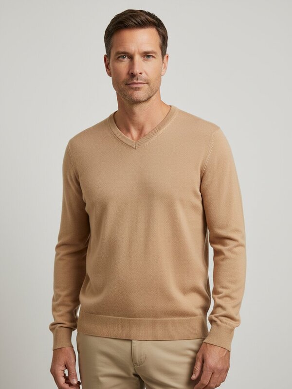 Camelbraun im eleganten V-Ausschnitt-Pullover