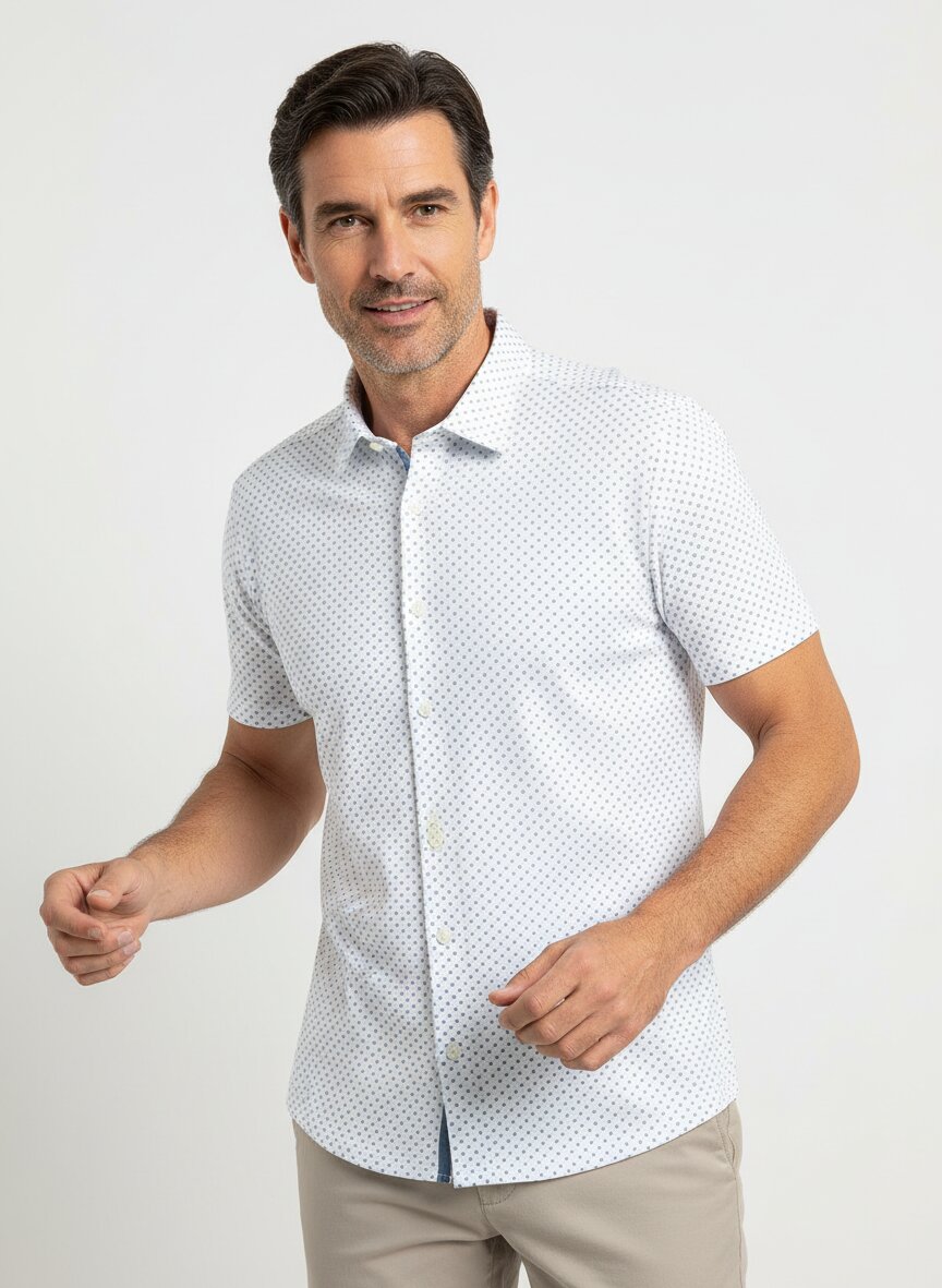 Kurzarmhemd, Jersey, Kent, weiß gemustert