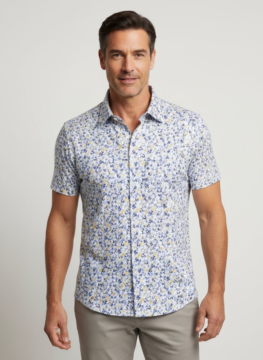 Kurzarmhemd, Jersey, Kent, blau-gelb floral