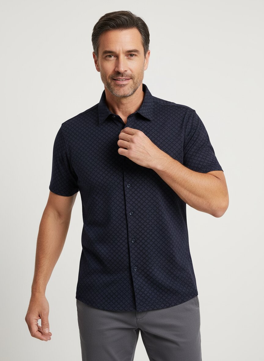 Kurzarmhemd, Jersey, Kent, dunkelbau gemustert