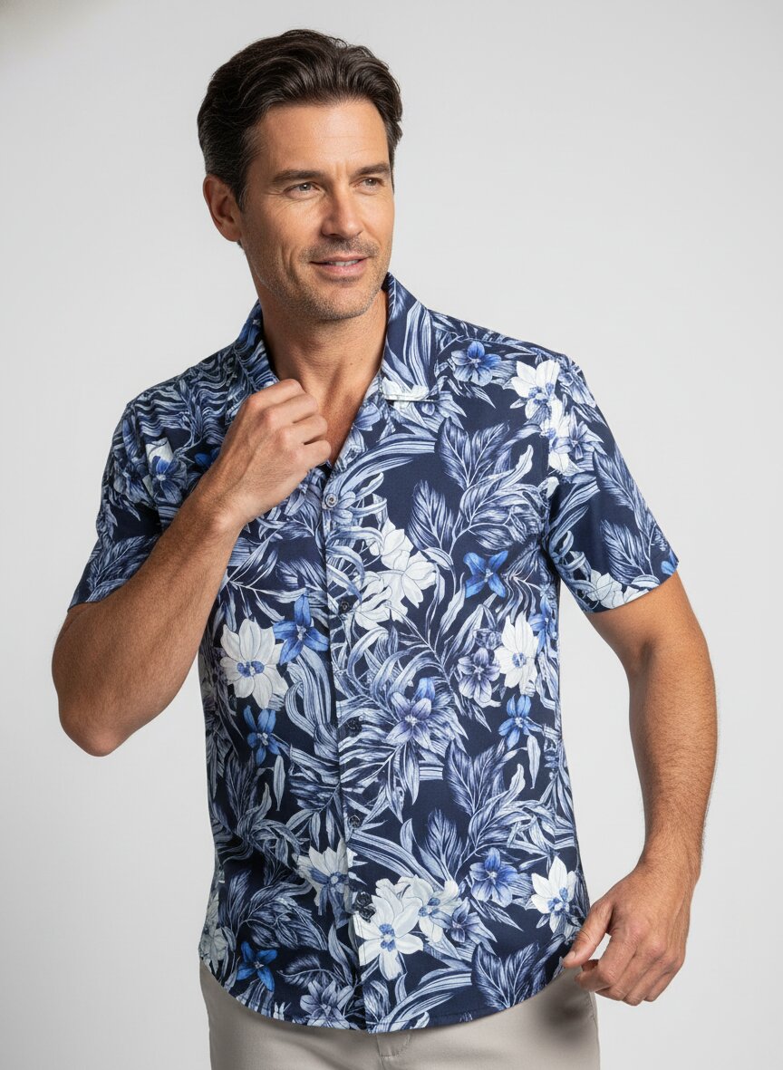 Kurzarmhemd Lido, Regular Fit, Jersey, Revers, navy floral