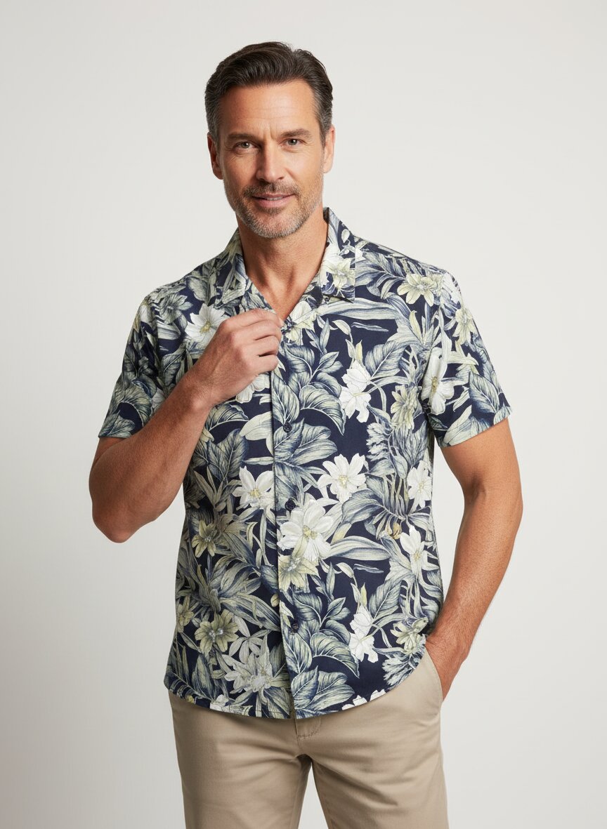 Kurzarmhemd Lido, Regular Fit, Jersey, Revers, grün floral