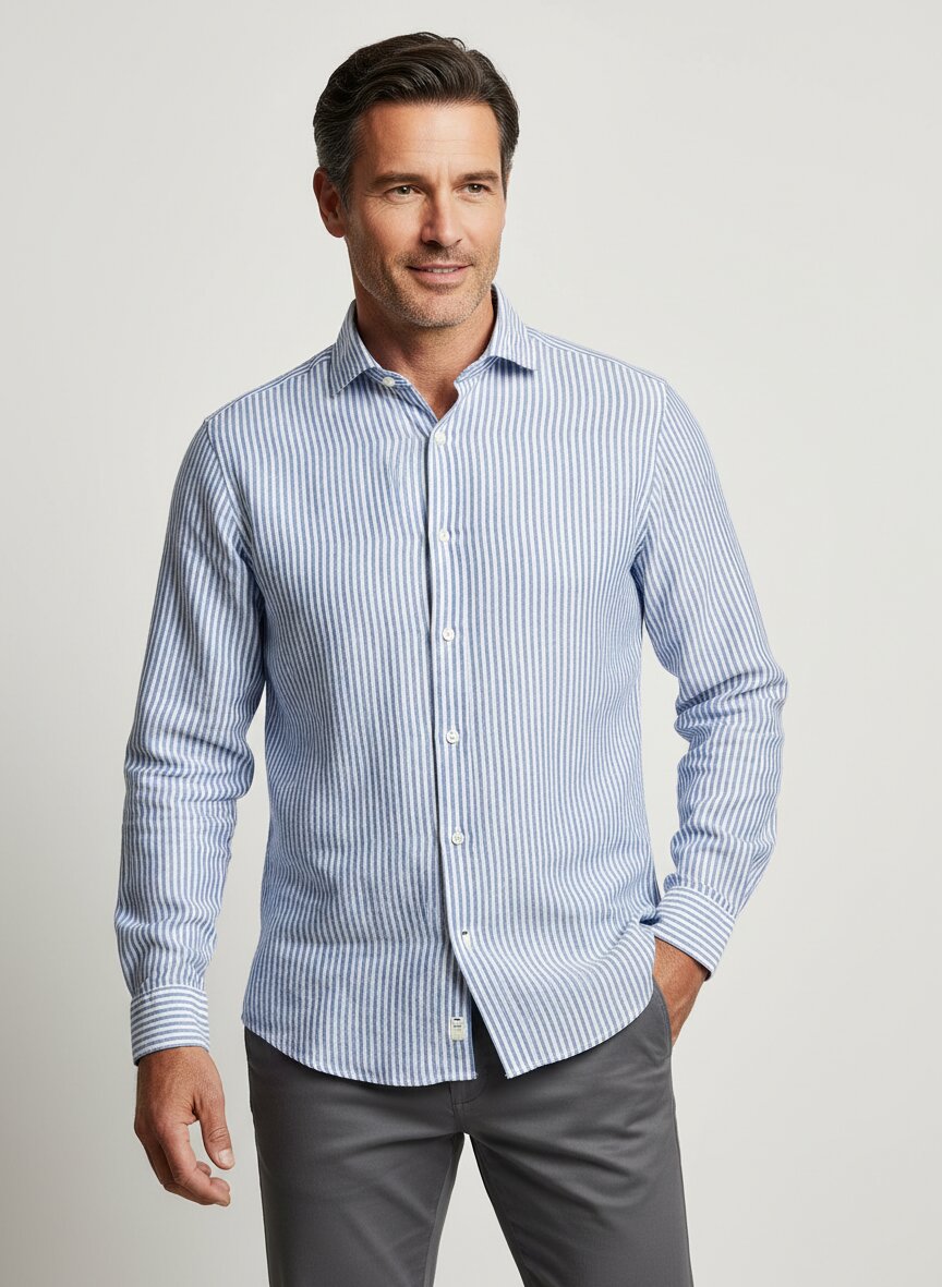 Hemd, Casual, Reines Leinen, Hai, blau gestreift