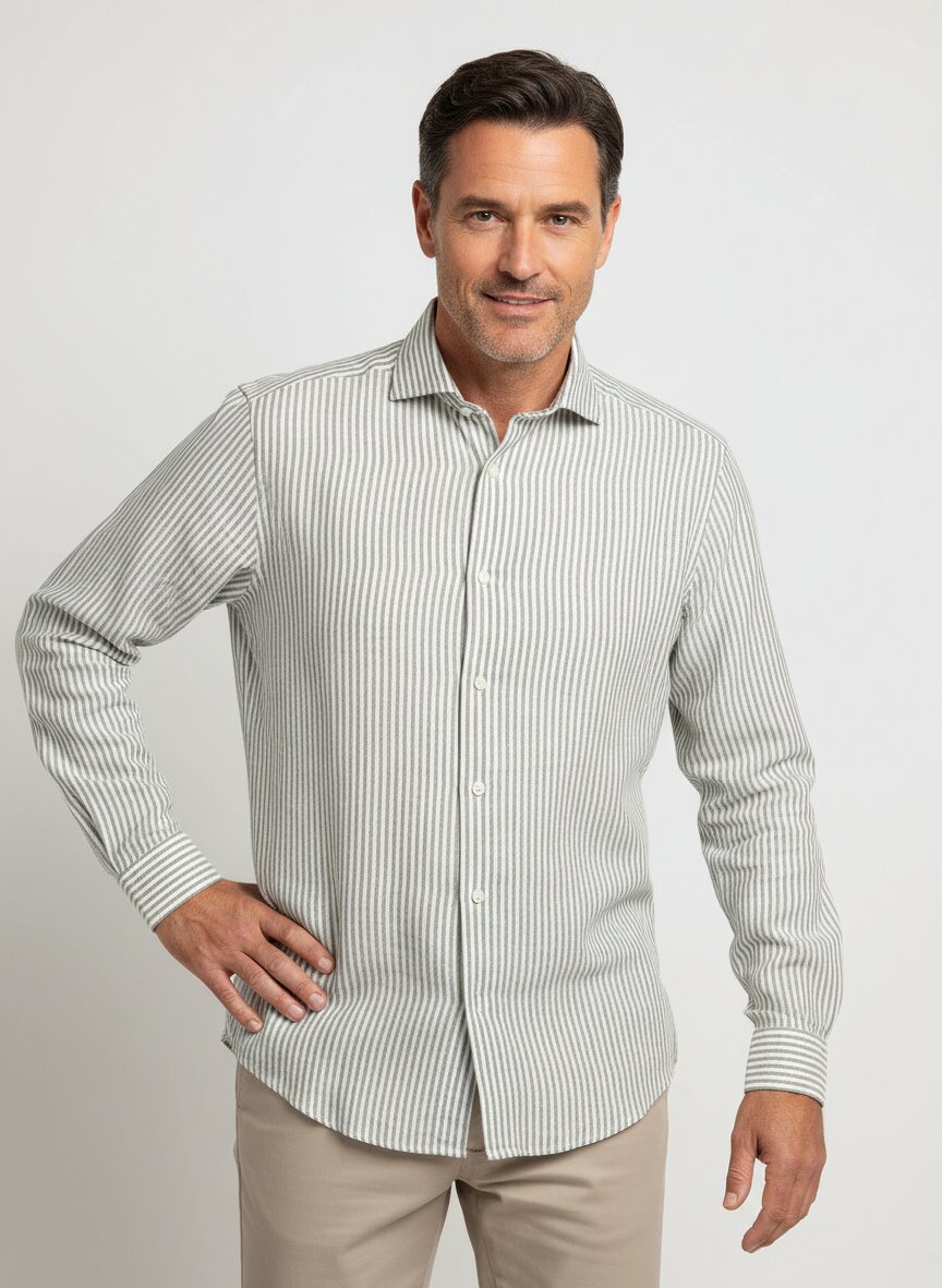 Hemd, Casual, Reines Leinen, Hai, grün gestreift